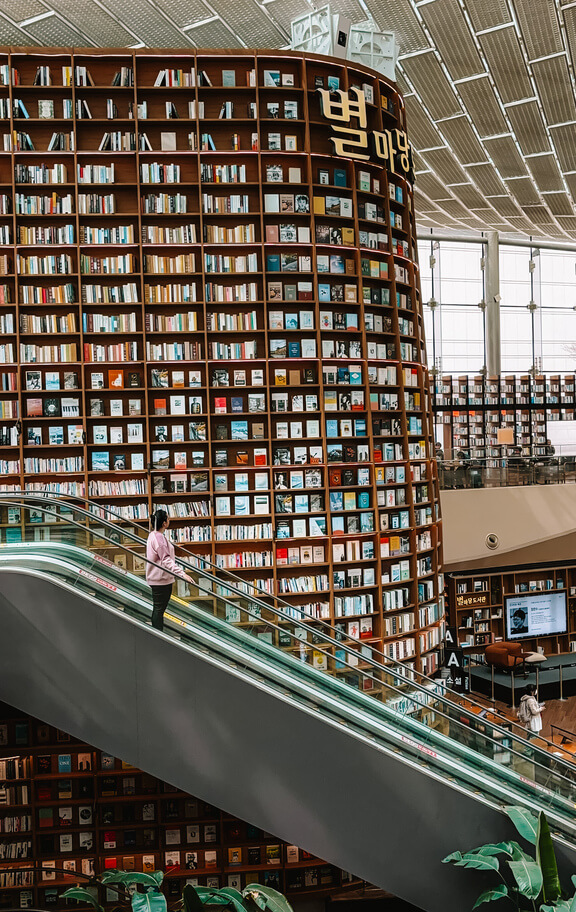 La Starfield Library es una impresionante biblioteca ubicada en el centro comercial COEX Mall, en el distrito de Gangnam. Este lugar es famoso por su arquitectura futurista, con estanterías de libros que alcanzan el techo, creando un ambiente espectacular y único.